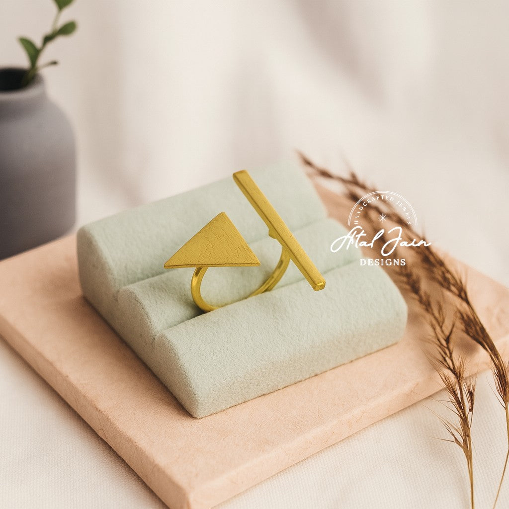 Get ready to add some bold and playful style to your look with the Arrowed Opulence Ring. This golden ring features a unique arrow and bar design that will stand out from the rest. Don't settle for ordinary, add some opulence to your jewelry game.
