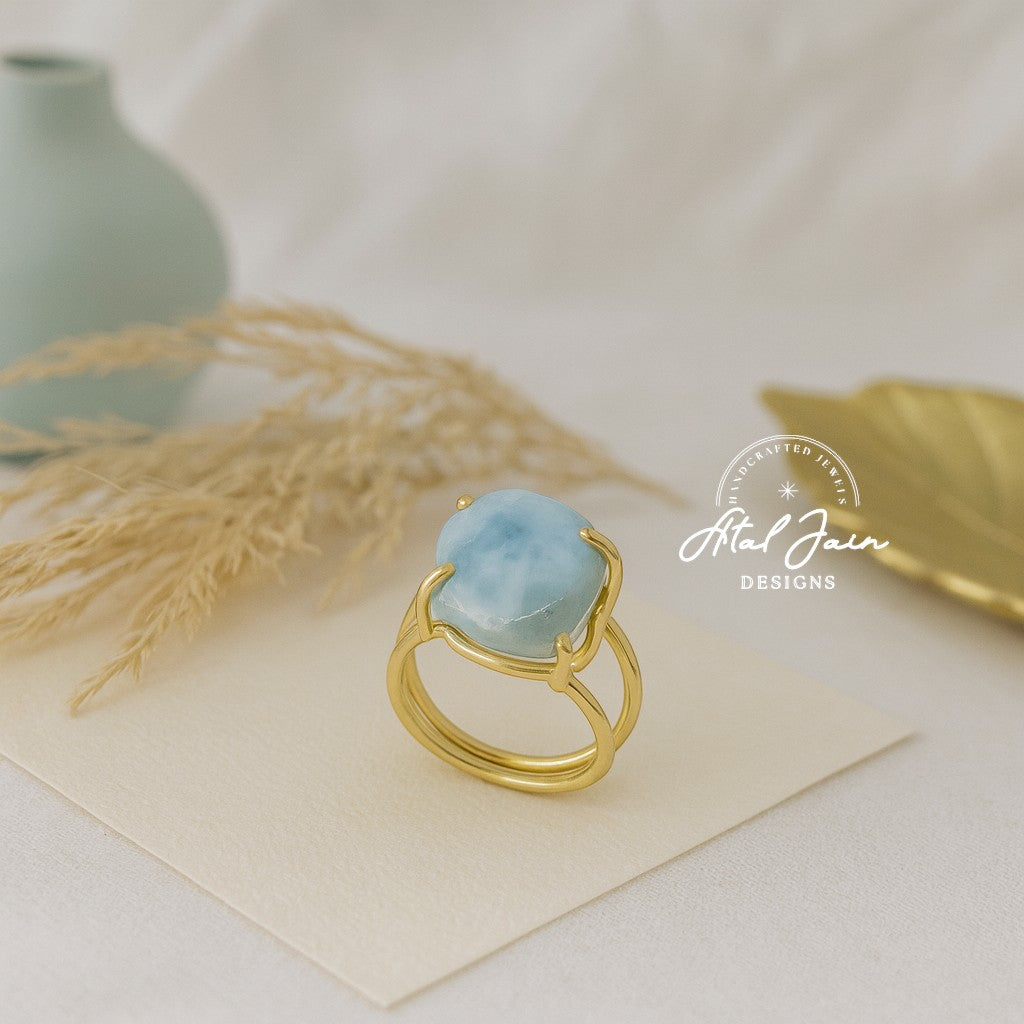 Unleash the ethereal beauty of the Blue Gem Ring, featuring a mesmerizing blue agate stone. Radiating calm and harmony, this ring is perfect for adding a touch of tranquility to any outfit. Embrace your inner peace with this stunning piece!