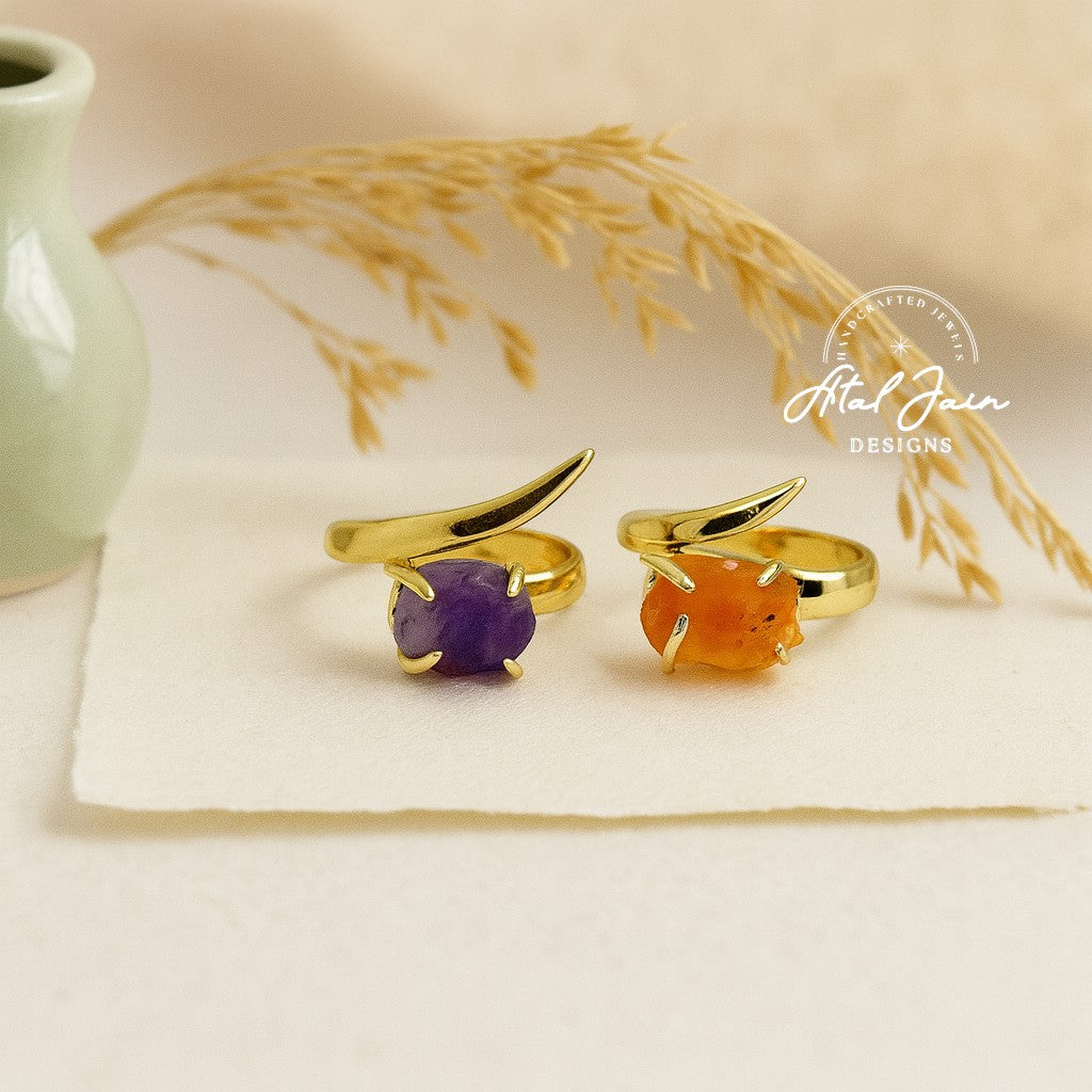 Shine bright like a diamond with our Golden Glow Ring! Featuring stunning semi-precious stones and a sleek golden curve, this ring will add a touch of luxury to any outfit. (All that glitters is not just gold!)