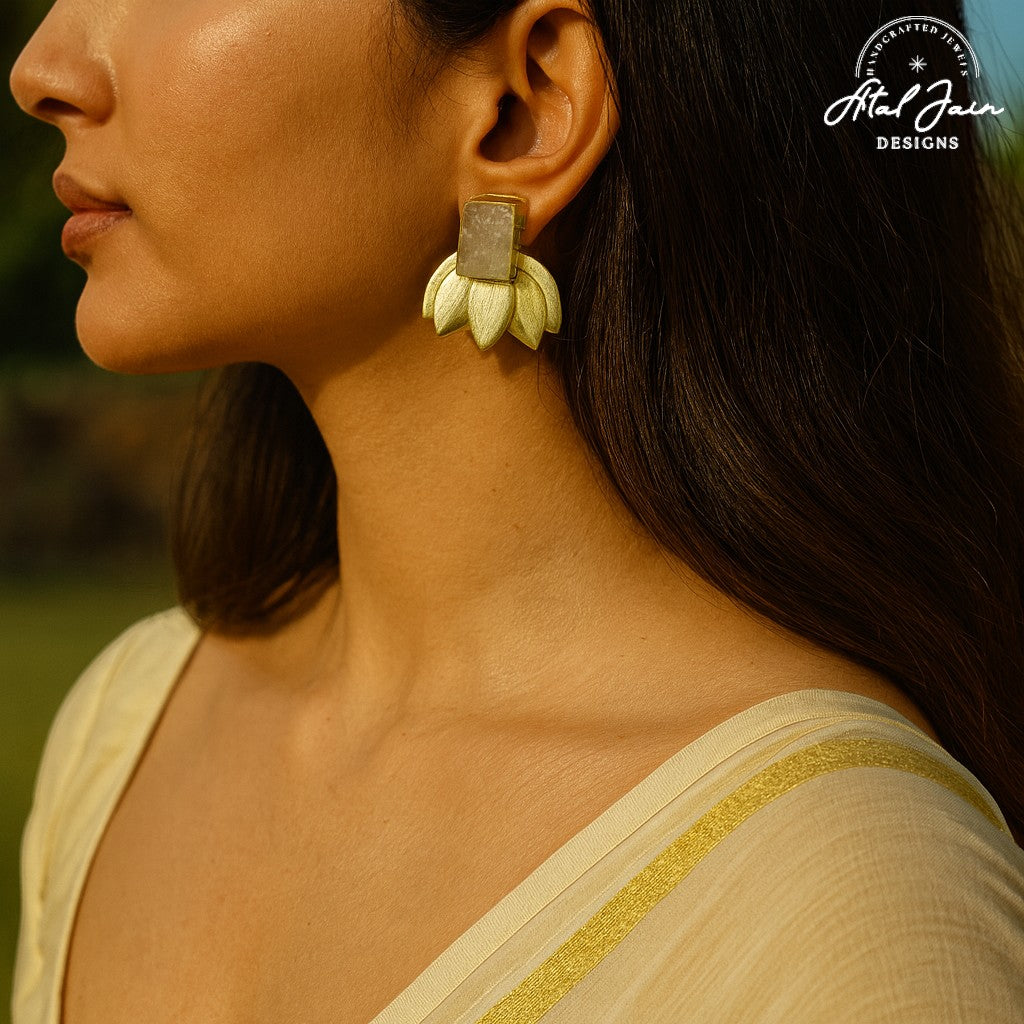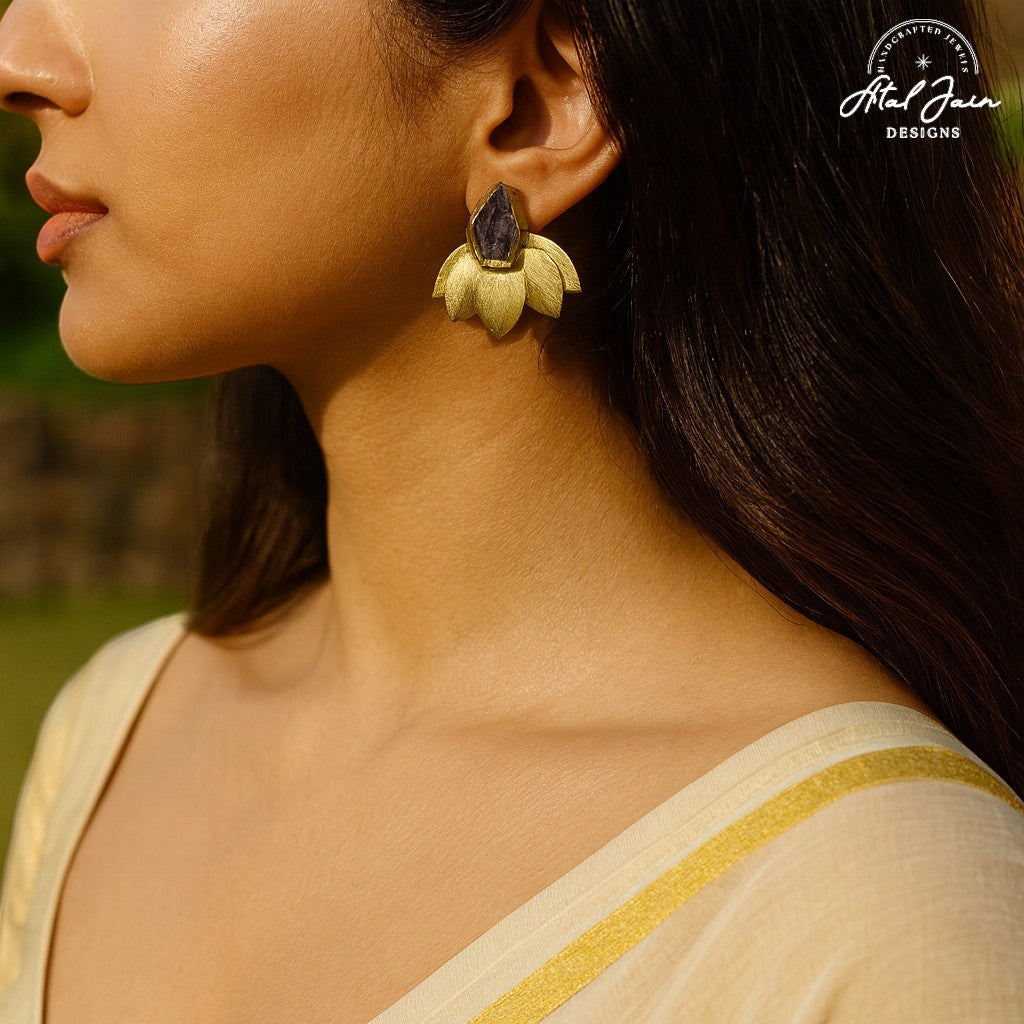 Unleash your inner zen with Golden Leaf Serenity. Adorned with semi precious gemstones and a delicate lotus pattern leaf, this piece not only looks stunning, but also promotes positivity and balance. Find your inner peace with every wear. Namaste.