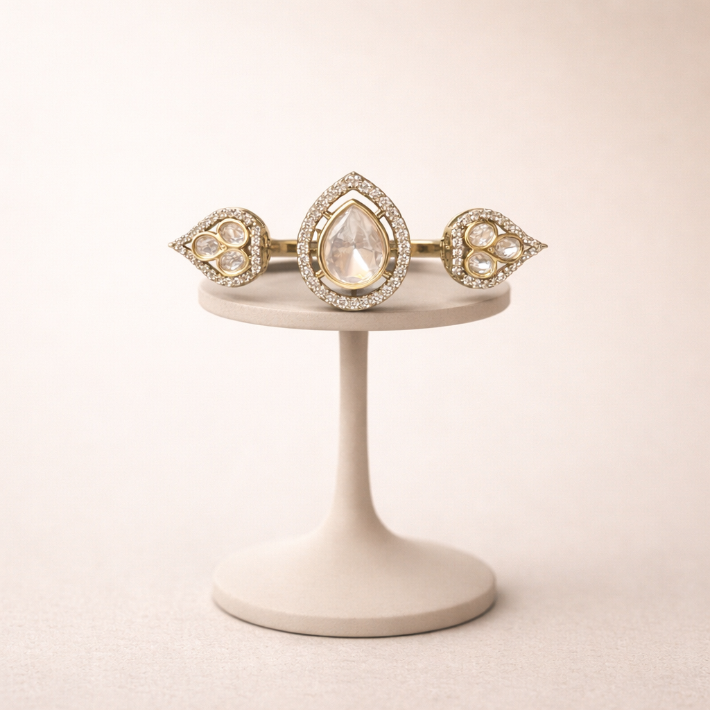 • Elegant side polki cluster accents