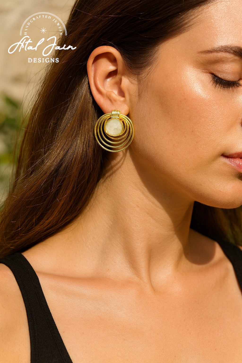 Add some luxury to your outfit with our Ivory Luxe Gemstone Earrings. Featuring a single semi-precious stone in a circular design, these earrings are the perfect combination of elegance and whimsy. Elevate any look with these unique and stylish earrings.