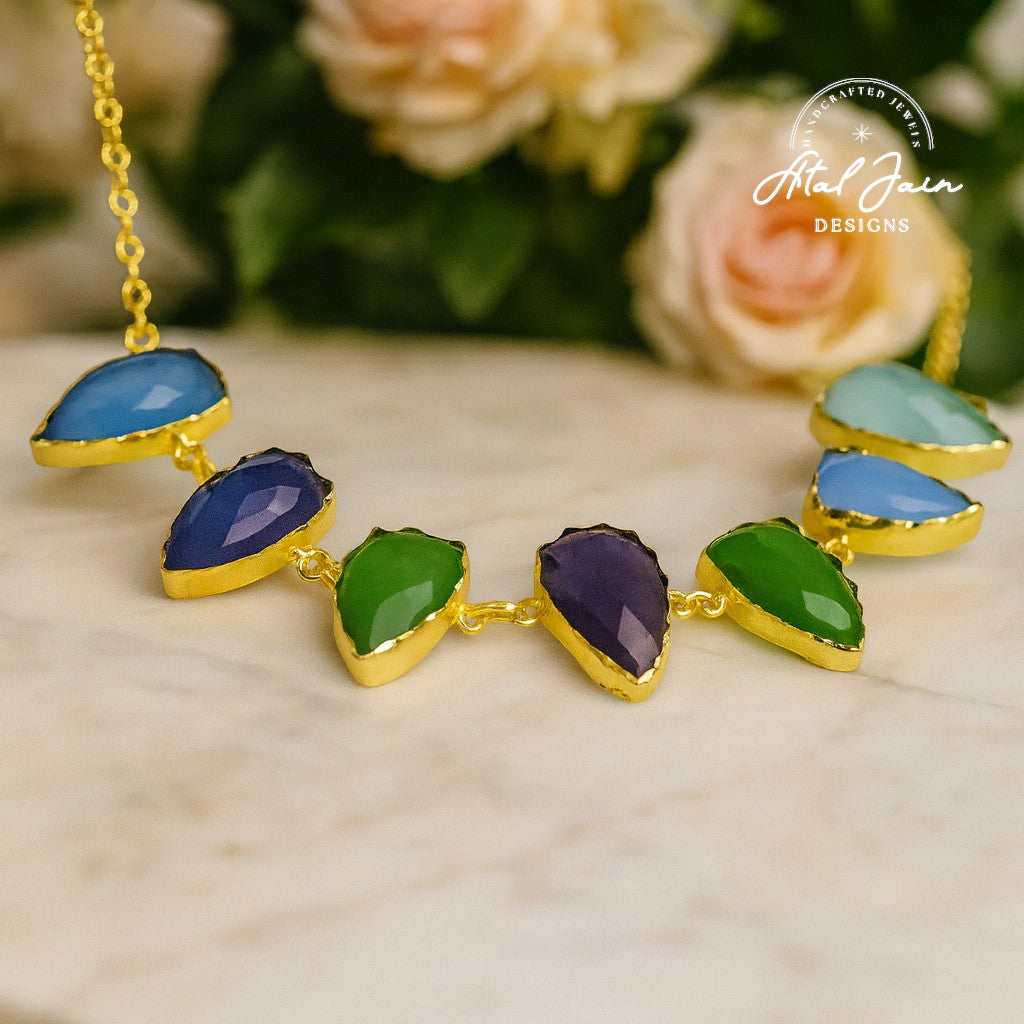 Unleash your inner gem and light up the room with our Jewel Jamboree Necklace! Featuring faceted and pear-shaped stones, this necklace is sure to add a touch of sparkle and charm to any outfit. Perfect for any jamboree, formal event, or night out on the town. Shine bright and stand out with this must-have accessory!