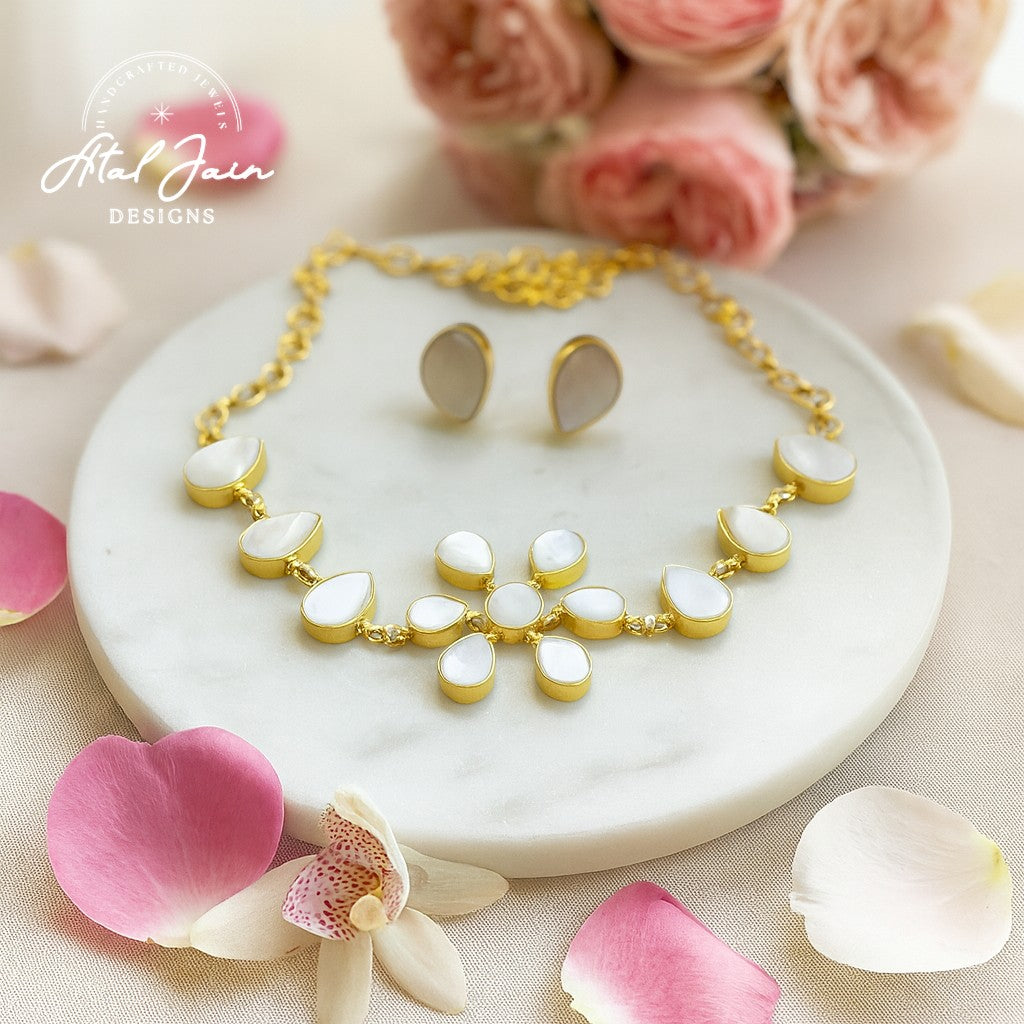 Unleash your inner luxury with our Luxe Mother of Pearl Set. Adorned with delicate mother of pearl and mop petals, this set exudes elegance and sophistication. Elevate any outfit with this unique and opulent accessory.