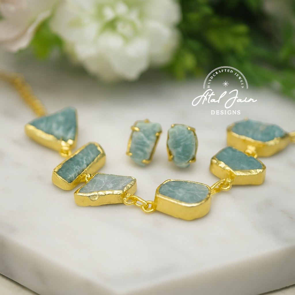 Indulge in the untamed beauty of Majestic Azure: The Lavish Necklace. Featuring uncut gemstones and raw semiprecious stones, this necklace brings a casual yet luxurious flair to any outfit. Channel your inner wild side and embrace the unique with this stunning piece!