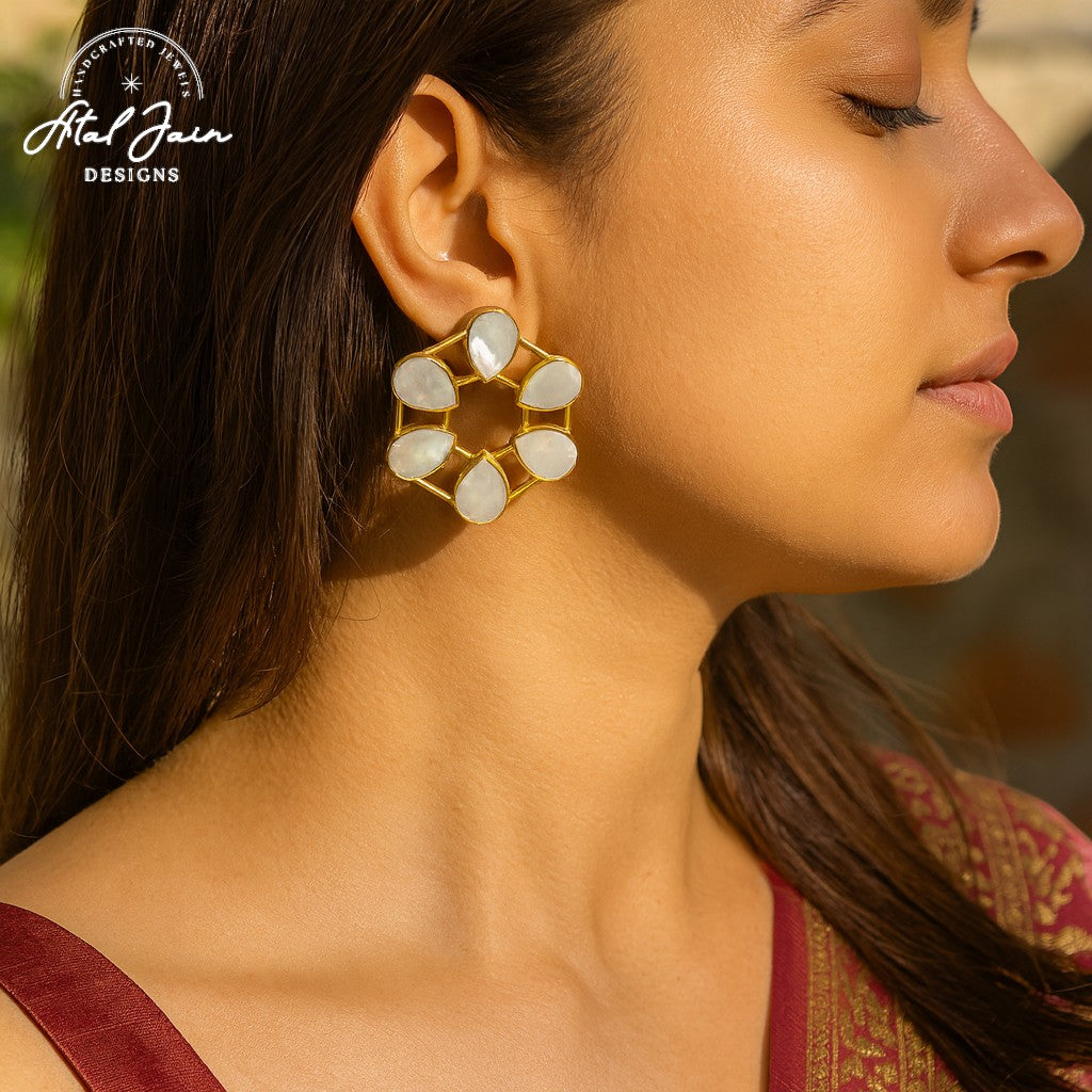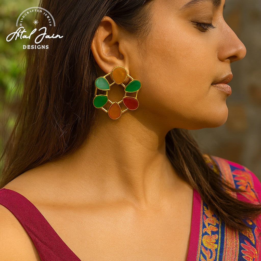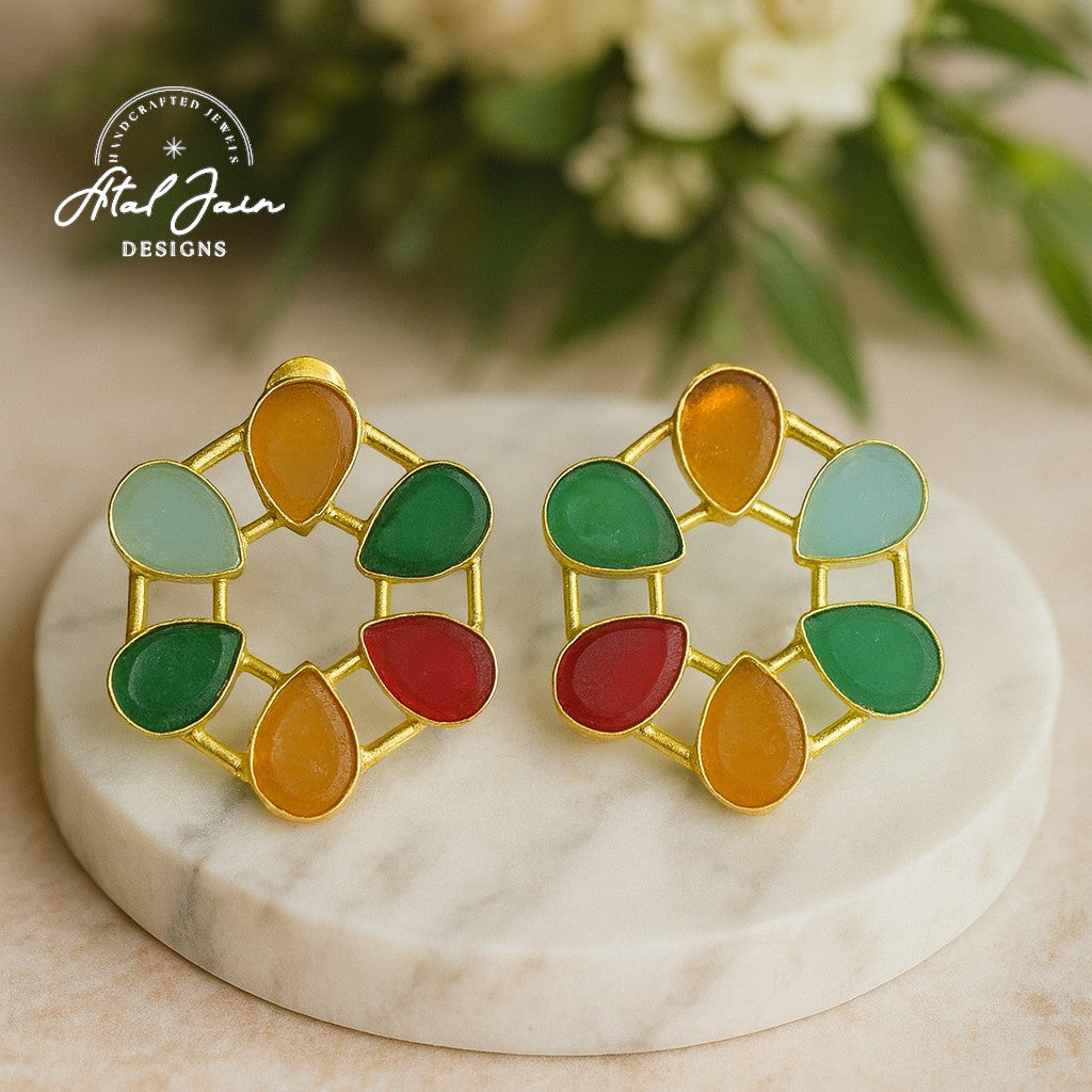 Introducing our Petal Luxe Adornments Earrings! Adorn yourself with these polished stones and gemstones that glisten like flowers. Add a touch of luxury and playfulness to any outfit. Petal perfection in every wear! (Flower and gemstone features, perfect for adding a playful touch to any outfit!)