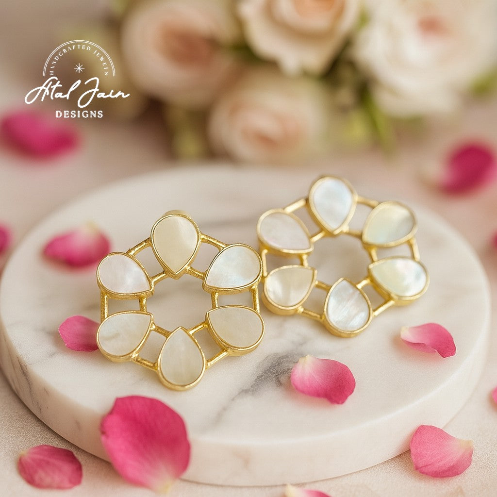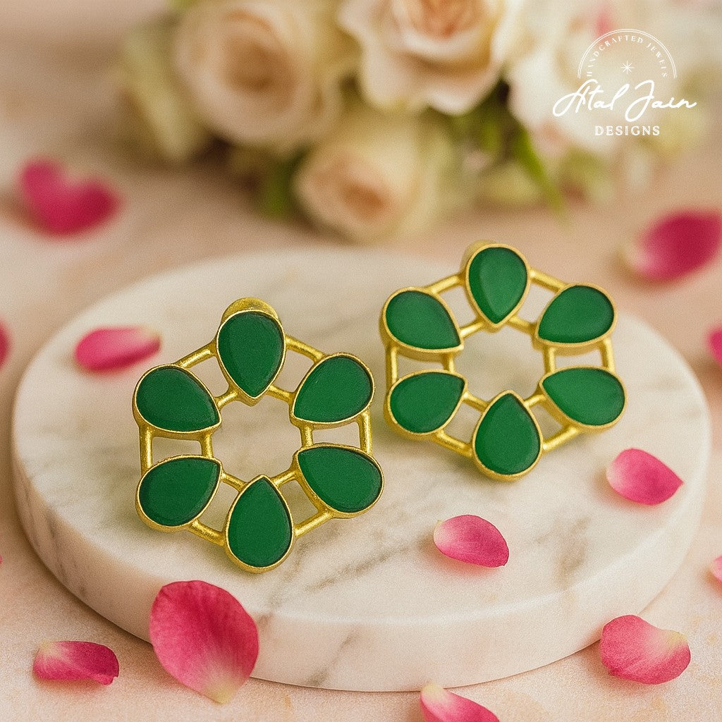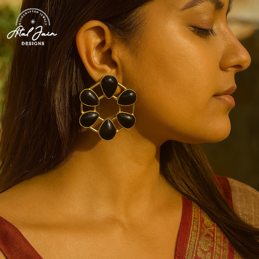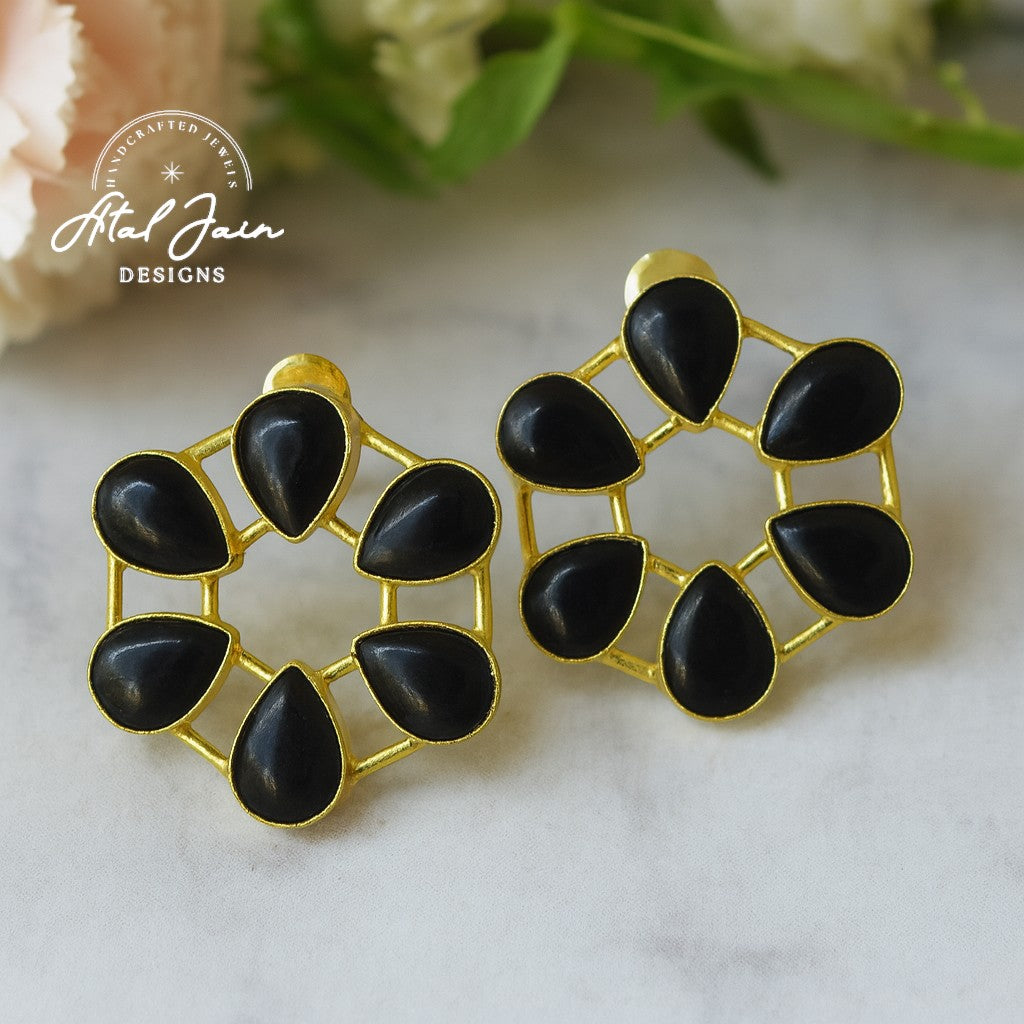 Introducing our Petal Luxe Adornments Earrings! Adorn yourself with these polished stones and gemstones that glisten like flowers. Add a touch of luxury and playfulness to any outfit. Petal perfection in every wear! (Flower and gemstone features, perfect for adding a playful touch to any outfit!)