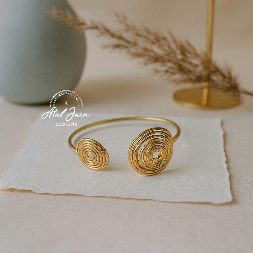 Step up your accessory game with the Spiral Luxe Cuff! Made with a golden wire and a spiraled design, this cuff adds a touch of whimsy to any outfit. Stand out from the crowd and embrace your unique style. (Spiral into fashion with this one-of-a-kind cuff!)
