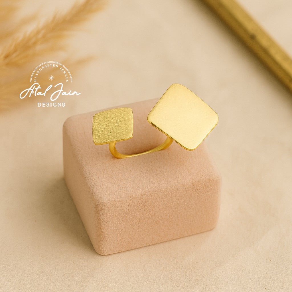 This cocktail ring exudes elegance and charm with its sumptuous square design. Perfect for adding a touch of glamour to any outfit, this ring is sure to make a statement. Who needs a crown when you can wear this splendorous square on your finger?